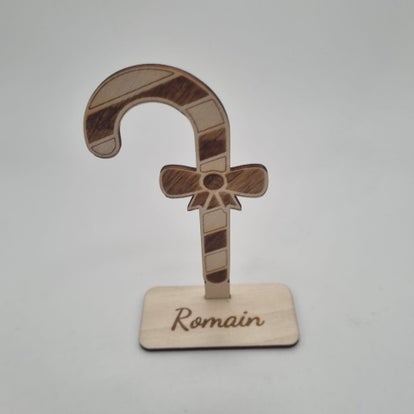 Marques-places en bois découpé au laser, personnalisables avec prénom – spécial Noël.